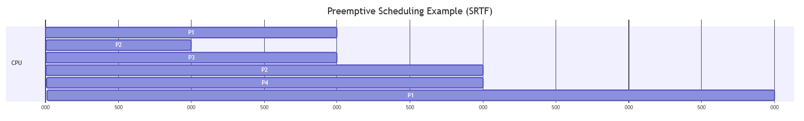 To better understand how preemptive scheduling works, consider the following example with four processes: