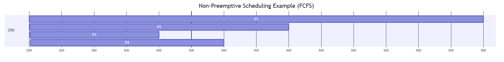 To understand how non-preemptive scheduling works, consider the same set of processes used in the previous example:
